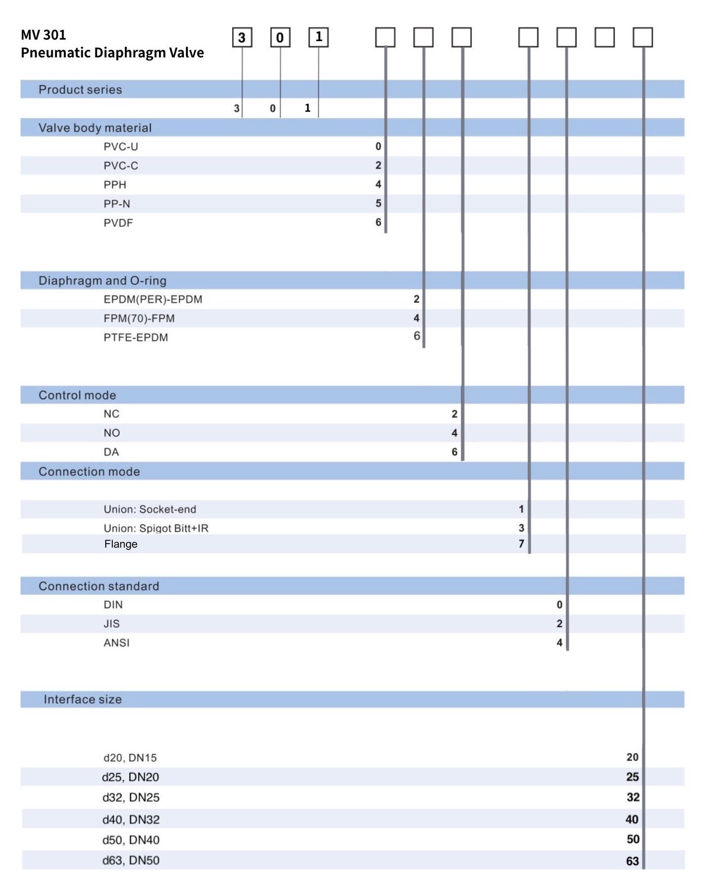 - Valve body materials: PVC-U, PVC-C, PP-H, PP-Natural, PVDF.