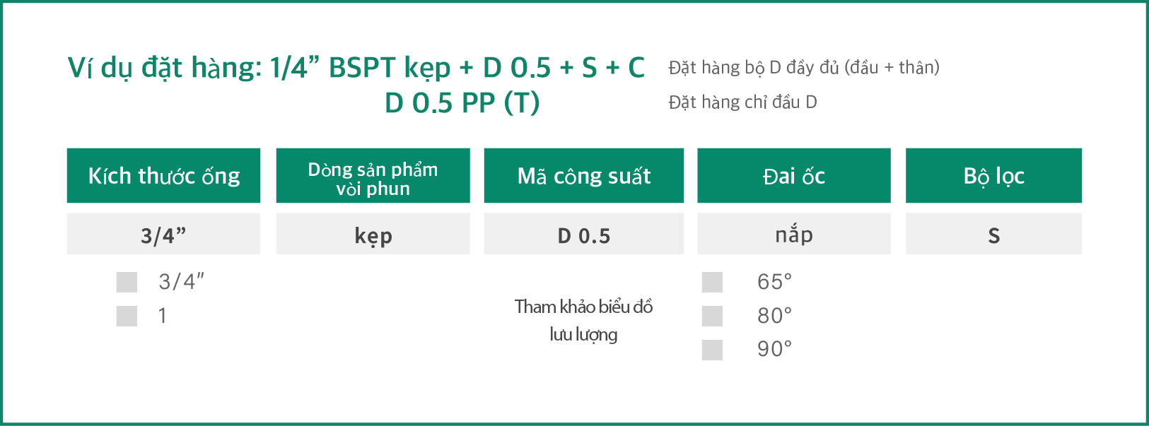 Vòi phun dạng quạt cung cấp một dải lưu lượng rộng. Ví dụ, ở áp suất thiết kế tiêu chuẩn là 1.5 Kg/cm², lưu lượng dao động từ 0.28 Lpm đến 2.8 Lpm. (Đối với các yêu cầu lưu lượng khác, vui lòng tham khảo bảng thông số kỹ thuật hoặc liên hệ trực tiếp với chúng tôi.) Tìm hiểu thêm: Áp suất, Kích thước lỗ và Lưu lượng của Vòi phun